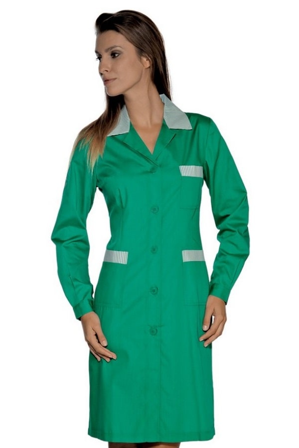 Prodotto in 5 differenti colori è un capo che ben si adatta a contesti lavorativi come Farmacie, Parafarmacie, Profumerie, negozi e contesti sanitari.