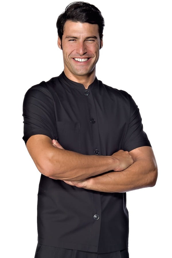 Pratica casacca bianca in polycotone light con collo coreano. Realizzata a manica corta con bottoni grandi classici in tinta. Casacca ideale per ambienti alimentari, gastronomie, formaggerie, esercizi commerciali. Elegante, leggera e confortevole