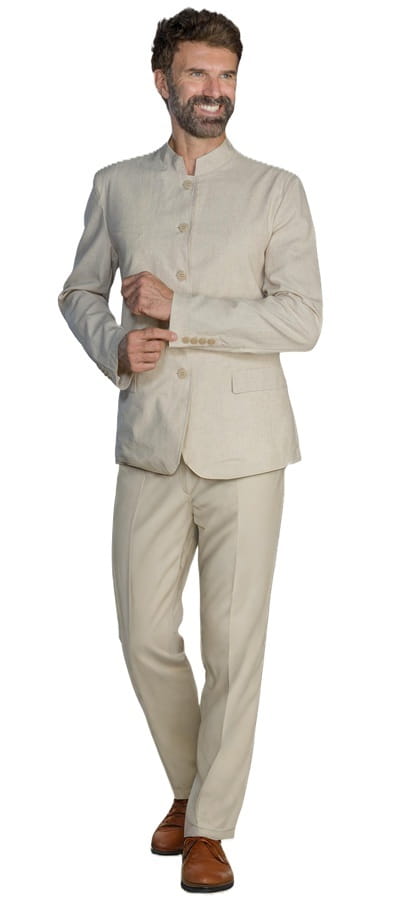 Moderna giacca da uomo coreana a 5 bottoni. Realizzata in misto lino, un tessuto leggero naturale e traspirante. Concepita per utilizzi continuativi in ambiti lavorativi alberghieri, centri benessere ed innumerevoli altre attività.