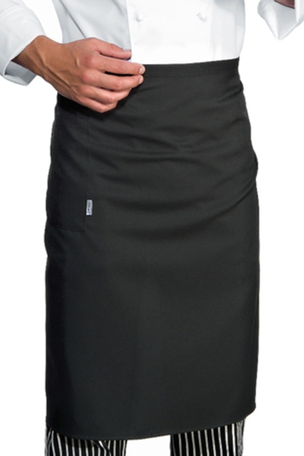 Di media lunghezza, appena oltre il ginocchio. Il Miglior grembiule basso per uno Chef. Avvolgente con i suoi 100 cm di larghezza e di un tessuto di cotone resistente e leggero