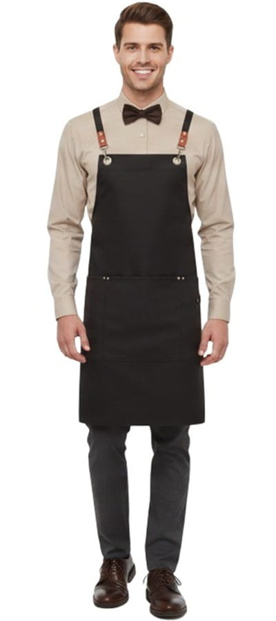 Elegante completo per camerieri da sala o Bar. Il grembiule è molto e resistente in 60% Cotone canvas spesso. Perfetto per chi lavora nel settore alberghiero e nel servizio in sala. Le fettuccie sono in tessuto leggero e morbido, incrociate lungo la schiena e staccabili per un lavaggio comodo. A corredo vi è una camicia leggera e traspirante, di facile stiro ed un praticissimo papillon. La divisa è funzionale per svolgere il lavoro di cameriere, barista in Bar o in ristoranti, enoteche e catering. Ottima per un'immagine professionale e curata. trasforma il ricevimento Clienti in un ambiente raffinato e professionale
