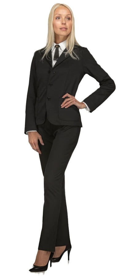 Elegante giacca da Donna sfiancata con pinces in vita e 3 bottoni. Realizzata in tessuto elasticizzato Elastic Jersey Milano. Concepita per utilizzi continuativi in ambiti di rappresentanza e reception. Molto pratica si piega come si farebbe con una felpa.