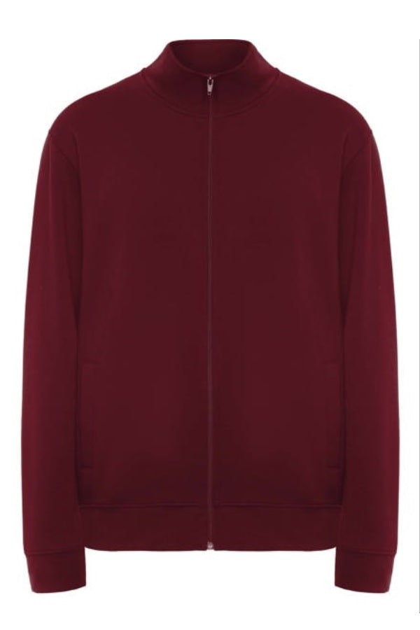 Felpa leggera a maniche lunghe con colletto alto. Le copri cuciture sono rinforzate sul collo. Zip intera centrale. Tasche laterali con disegno tondo. Costina sui polsini e sul girovita.