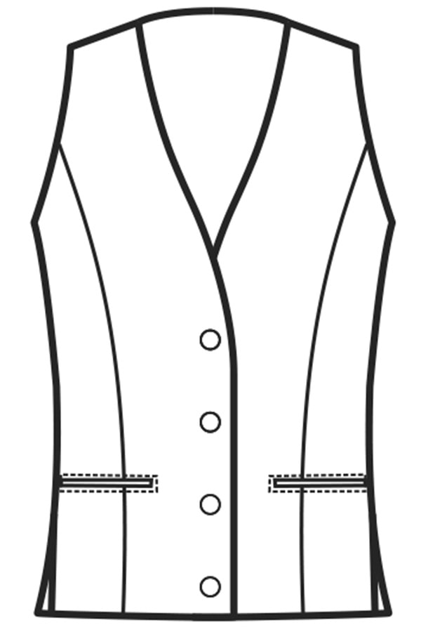 Elegante e sfiancato gilet da Donna con collo senza risvolto, bottoni in tinta, 2 tasche estetiche e fibia di regolazione posteriore