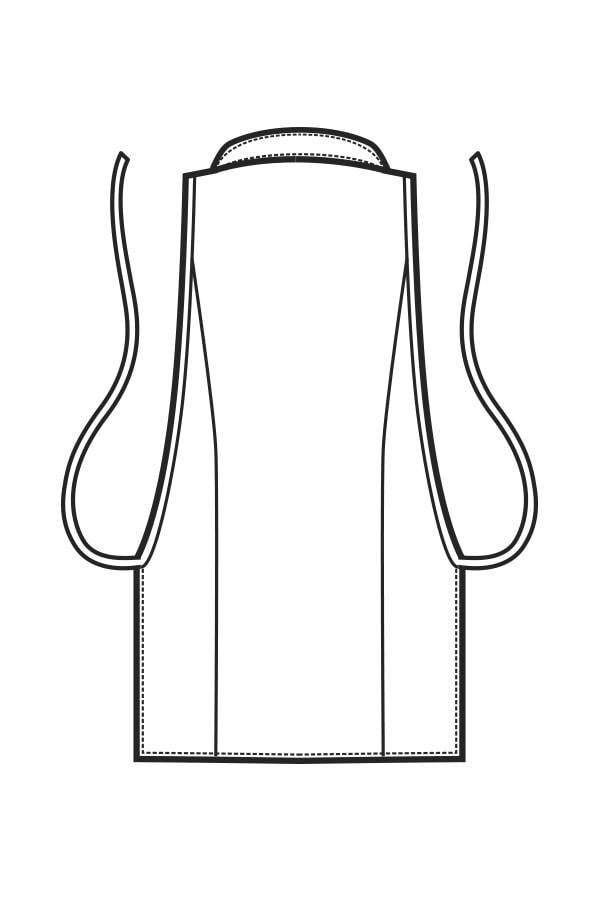 Si indossa dall'alto e si chiude dietro come un grembiule. Copre tutta la parte anteriore e la schiena fino ai fianchi.