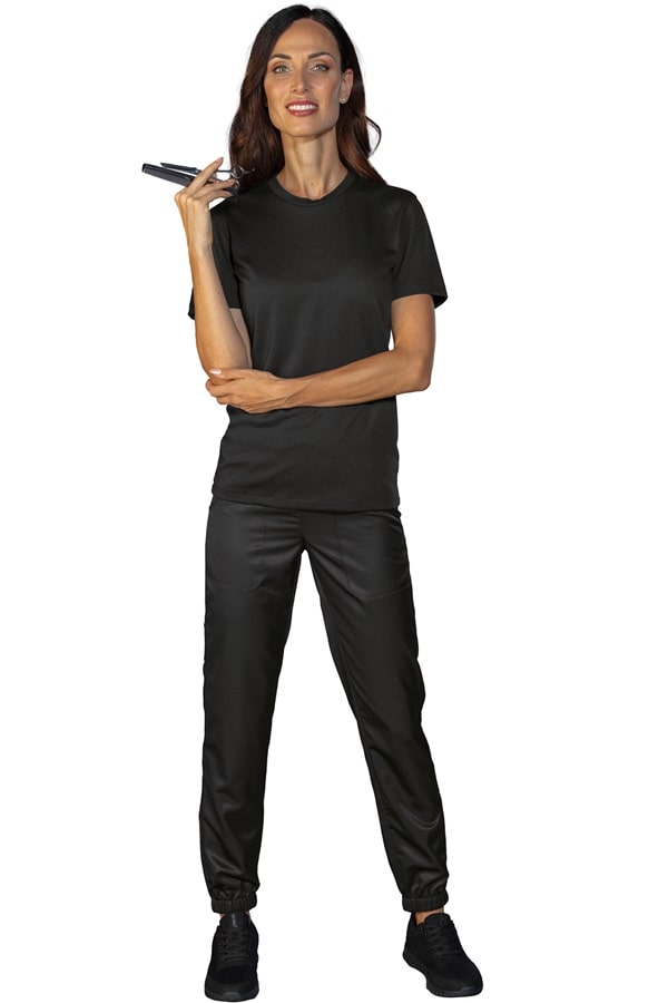 Pratica maglietta caratterizzata dal tessuto antibatterico ed antimacchia nero idrorepellente e traspirante.