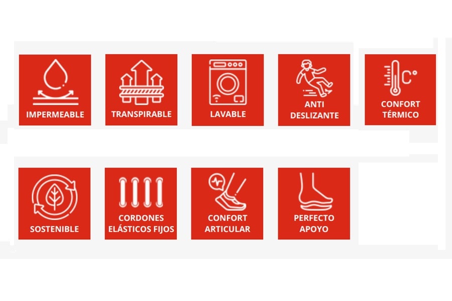 Prodotto mediante iniezione diretta, la parte superiore e la suola sono fuse in un unico pezzo. Non ci sono cuciture o incollaggi.