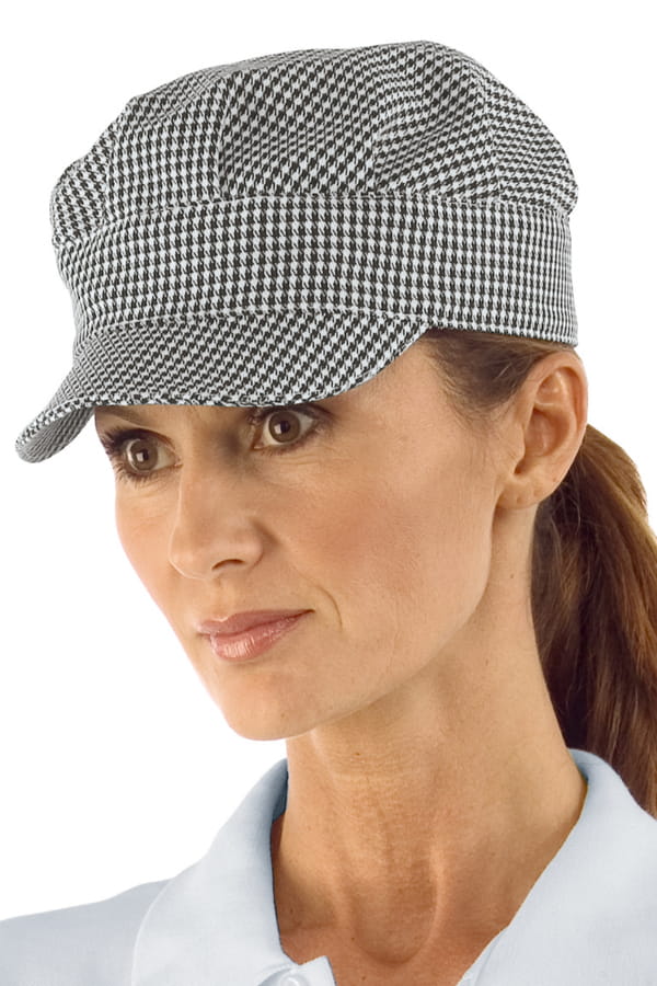 Elegante cappellino leggero per svariati utilizzo lavorativi. Non affatica neanche dopo molte ore di utilizzo. E' leggero, regolabile posteriormente con una solida fettuccia in velcro che permette di legare i capelli. La visiera anteriore è piccola e leggera per garantire il massimo confort di utilizzo.