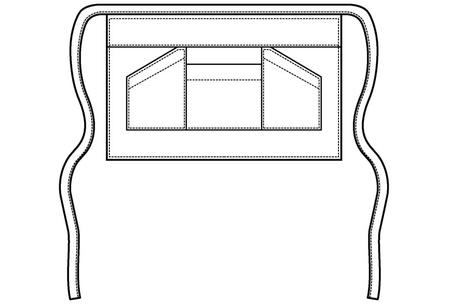 Grembile con 2 tasche laterali con apertura diagonale. Molto pratico per blocchetti comande, ordini, penne, tablet e cassa. Questa versione è dotata di ampia tasca centrale porta tablet. Realizzato in polyestere.