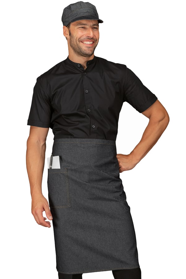 Grembile con 1 tasca sul lato destro. Molto pratica per blocchetti comande, ordini, penne, tablet e cassa. Ha una fettuccia sottile e lunga. Realizzato in tessuto 100% Cotone, Stirofacile ed assorbente.