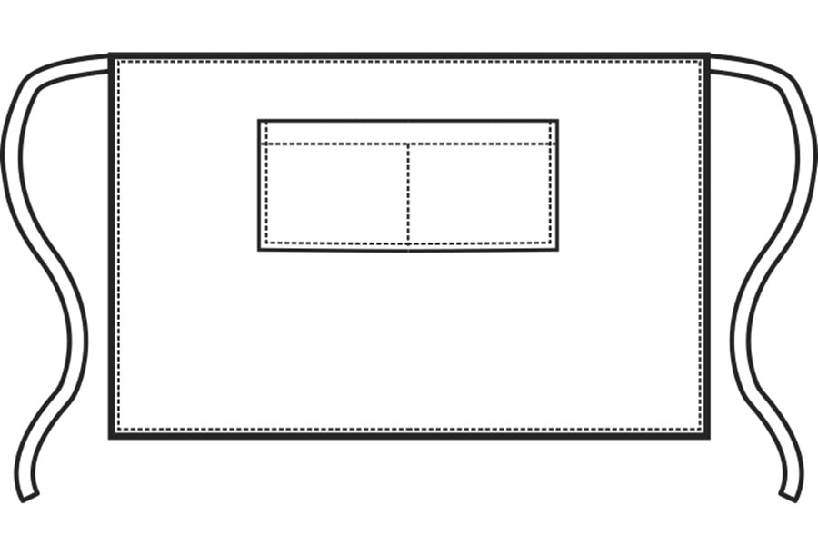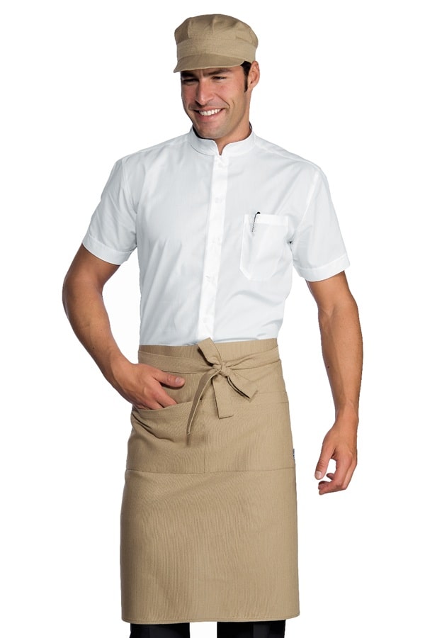 Elegante grembiule a vita bassa e mezza lunghezza appena sotto le ginocchia.