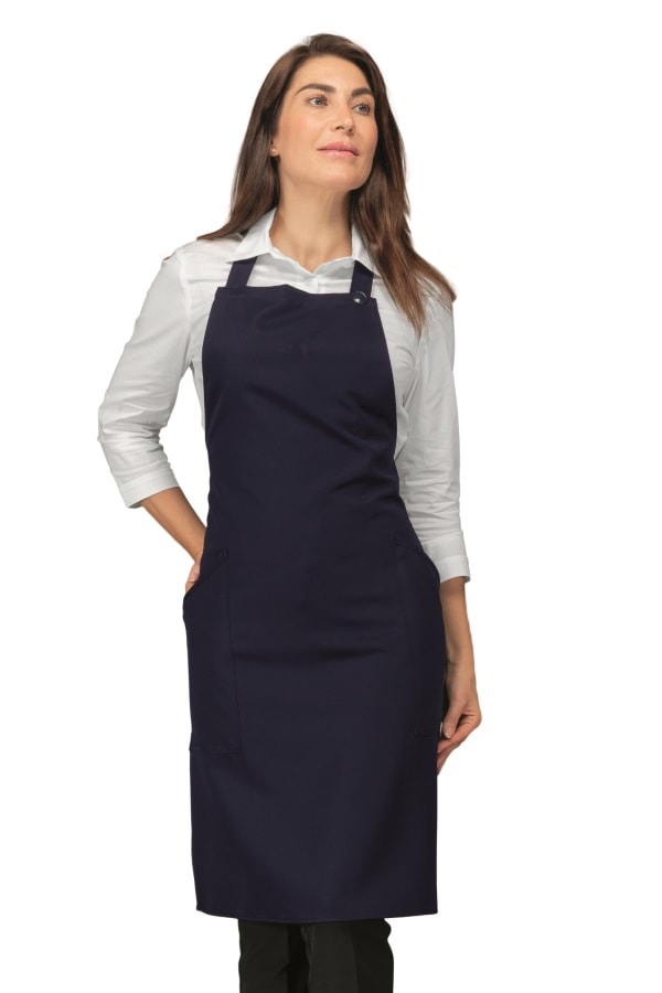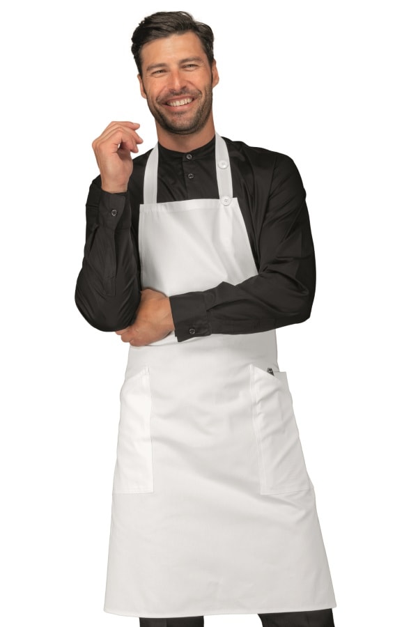 Fettuccia regolabile con 3 bottoni. Lungo e avvolgente con 2 tasche posizionate sui fianchi. Realizzato in tessuto polyestere resistente ai liquidi e stirofacile oppure Bianco in 100% Cotone o Nero in Misto cotone