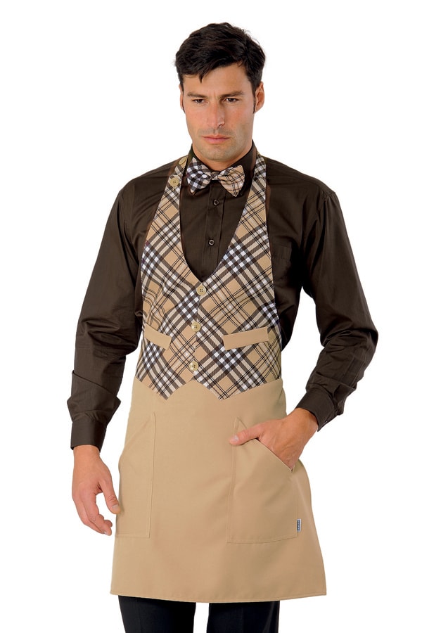 Caratterizzato dal collo senza risvolto e dalla linea moderna del gilet. Realizzato nel resistente 100% polyestere Isacco.Ideale come divisa da bar o uniforme da cameriere è disponibile in 18 varianti di colore molto eleganti