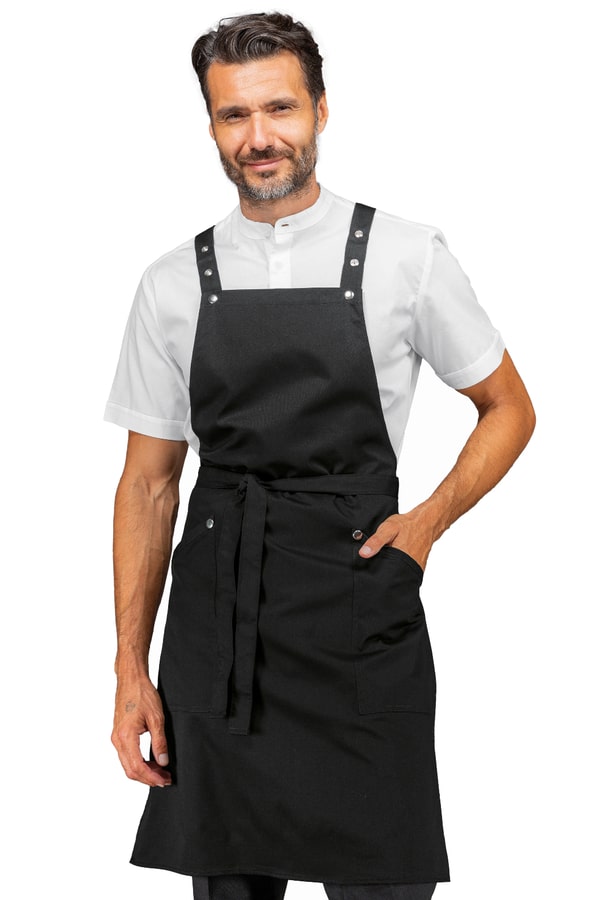 Realizzato nel polycotone Isacco da 195 Gr.mq. La fettuccia, ad incrocio dietro la schiena, lo rende particolarmente confortevole. E' regolabile con comodi bottoni metallici a pressione.Davvero bello ed elegante in 4 versioni di tessuto e colore