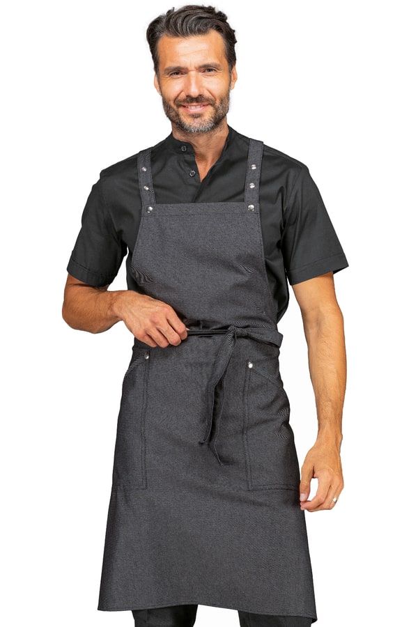 Realizzato nel 100% Cotone Black jeans. La fettuccia, ad incrocio dietro la schiena, lo rende particolarmente confortevole. E' regolabile con comodi bottoni metallici a pressione.Davvero bello ed elegante in 4 versioni di tessuto e colore