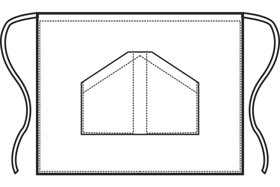 Grembile con 1 tasca grande centrale a doppio scomparto ed aperture diagonali. Molto pratica per blocchetti comande, ordini, penne, tablet e cassa. Ha una fettuccia sottile e lunga. Realizzato in polyestere, quindi stirofacile e non assorbente.