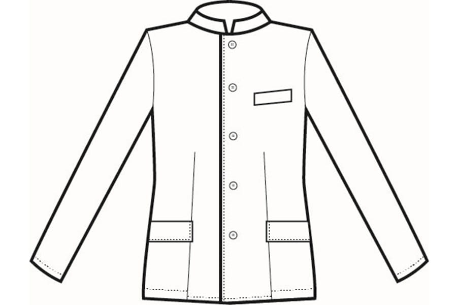 Moderna giacca sfiancata con 5 bottoni e collo coreano. Realizzata in tessuto elastico di jersey morbido, resistente e non stiro. E' Concepita per utilizzi continuativi in ambiti di rappresentanza e reception.