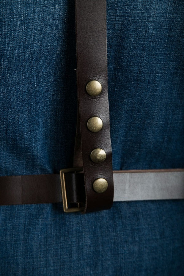 il grembiule viene lavato a 30 ° C in un programma di centrifuga leggera e stirato. Le cinghie di cuoio devono essere rimosse durante il lavaggio.
