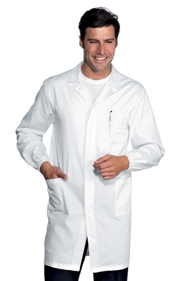 Con maniche lunghe e polsi a scelta elastico, maglia, liberi. Ideale per laboratori, studenti, farmacisti e farmacie, studi medici, dottori ed operatori del settore sanitario medicale chimico e farmaceutico. Questa versione ha la caratteristica di avere il tessuto più resistente ai fini della sicurezza sul lavoro.