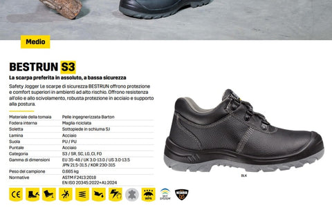 BESTRUN è la scarpa di sicurezza S3 che unisce protezione e comfort in un'unica soluzione. Con intersuola e puntale in acciaio, offre una difesa affidabile contro i rischi sul cantiere e in ambienti industriali. La fodera in nylon a rete garantisce traspirazione ottimale, mantenendo i piedi freschi durante le lunghe giornate lavorative. La suola antiscivolo (SR) assicura stabilità e aderenza su superfici umide e irregolari, riducendo il rischio di scivolamenti. Il design rinnovato combina estetica moderna con funzionalità collaudata, rendendola la scelta ideale per chi non vuole compromessi tra sicurezza e vestibilità